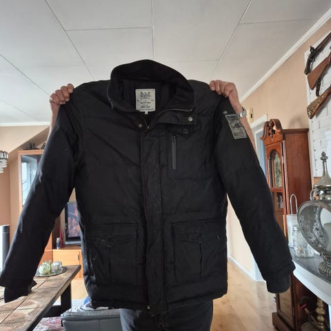 Kragen stor godt opp om ønskelig, glidelås og knapper. Veldig gode lommer med knapp!