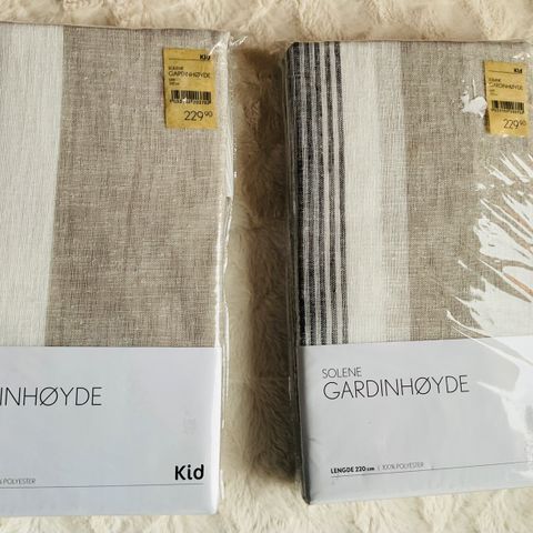 Gardiner i mørk lilla farge kjøpt på Kid. Det er 2 lengder, bredde 135cm/lengde 220cm. Velourgardin som gir en flott glans, 100% polyester. Kan sendes, mot at kjøper dekker porto.