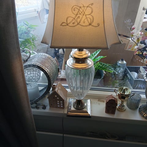 Versace lampe selges for 25000 kr. H-57 cm.