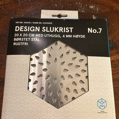 Jordet slukrist i blankt, rustfritt kromstål. Godstykkelse 1,2mm. Målt avrenning på mer enn 92,7 liter i minuttet grunnet uthugget.