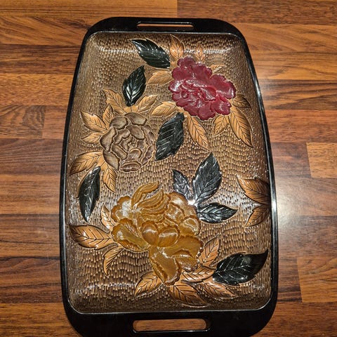 Vintage stilig fat fra Japan selges. «Modern art mosaic». En flekk som ikke er blitt prøvd fjernet. Noe bruksmerker/slitasje. Selges som det er. Se bilder