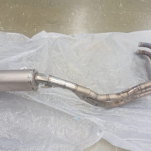 Titanan effektanlegg fra Scorpion for GSXR 1000 selges. Klemme rundt lyddemper er sprekt, litt småmerker på demper ellers ok.