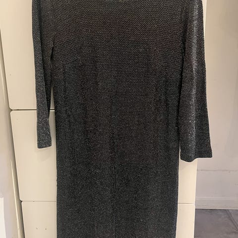 Lekker koksgrå/sorte kjole selges da den er for liten. Kun vasket, aldri brukt. Veldig fin fasong, strechy og god kvalitet på stoffet.