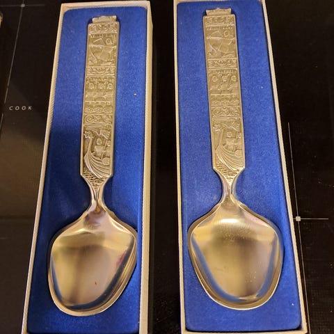 Rustikk bestikkboks, fire separate rom med lokk. Flott dekorert på lokkene
