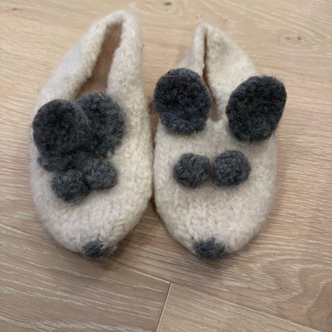 Supersøte tovede ulltøfler med ullfor og skinnsåler