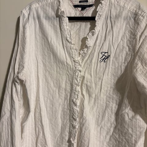 Delikat, hvir kortermet skjorte med pen struktur i stoffet. Ikke brukt, kun hengt i skapet.