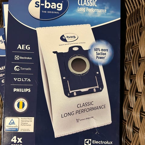 Støvsugerposer 2 pakker. Den ene er åpnet og tatt ut 2 stk. så er igjen 2 stk. og den andre er uåpnet med 4 stk. i. Selges da jeg ikke har støvsuger som passer disse lenger.