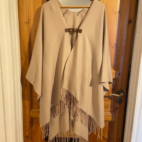 Nydelig sjal med frynser i leire /rosaaktig farge selges billig.