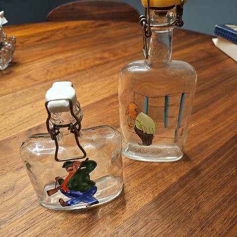 Tror flasken kun har stått til pynt (det lukter ikke noe drikke av den)
