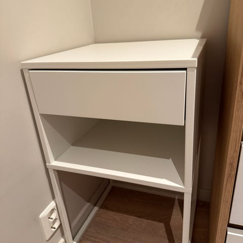 Utstilling selges: Mistral skap 011 81 snøhvit. Mål: H: 61, B: 45,5, D: 42,1. FØR: 3.818,- NÅ: 999,-