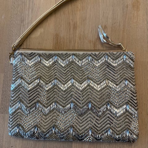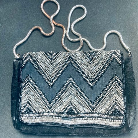 Veske med perler og detaljer i sølv. Brukt kanskje én gang.