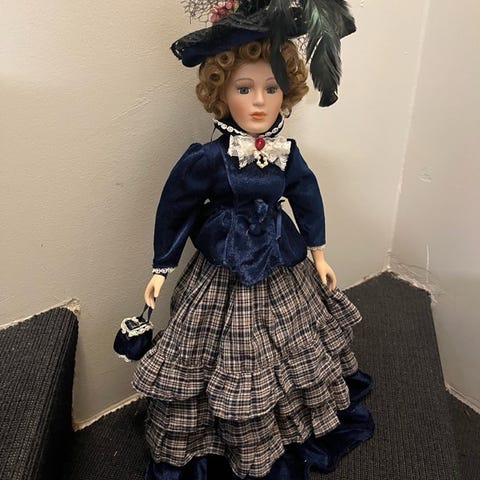 RYDDESALG AV NOSTALGISKE PORSELENS DUKKER SITTER I GYNGESTOL OG SØKER NYTT HJEM