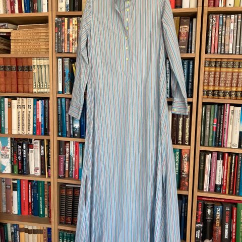Klassisk stil. Pent og lite brukt, med foret, ca 2 ganger i festen. Bomull 96.3%. lengde 102 cm, midjemål 68 cm,