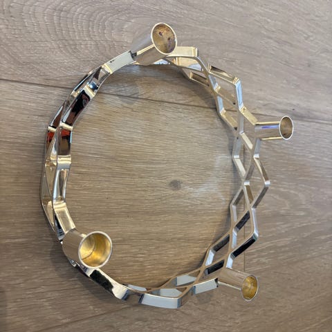 En skjønn lysestake fra 1960-tallet, dansk design (Jens Quistgaard), selges. Den er i fin stand, material kobber, diameter 13 cm, brutalistisk stil.