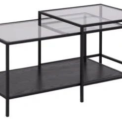 vidaXL Sidebord 3 stk med glass topp svart polyrotting