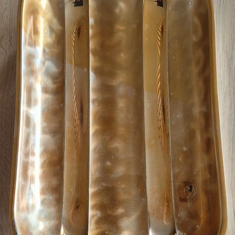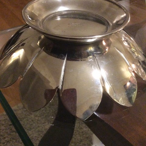 Pent gammelt fat med kuleføtter. Dm er 22,5 cm.