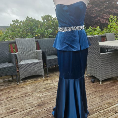 Selger en fantastisk lang kjole i dyp blå farge