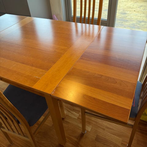 Spisebord + 6 spisestoler + 2 klaffer