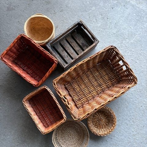 Lot med pene kurver og fat til brød, kaker, juledekorasjoner, blomster, eller til bruk til å legge en gave, som du skal gi bort. Se mål under bildene.