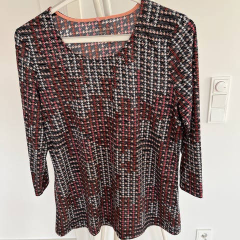 Stilig topp fra Gerry Weber, ubetydelig brukt- toppen er i god stand. Farven er gull/oliven/natur —dus med glitter effekt i garnet. 💄 Førpris kr. 950