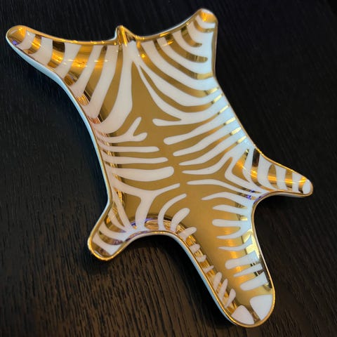 Den er 23,5x23,5 cm og 5 cm høy. Den er så god som ny.