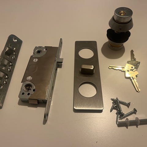 Rustfri låskasse . Stolpe 21 x 2 cm , dybde til sylinder center 5,5 cm . Listepris kr 4558 .