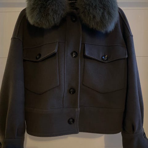 Charlie jakken designet i en varm blanding av ull. Jakken har to lommer med knappelukking og avtakbar krage i premium revepels.