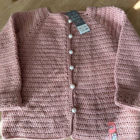 Ny hekla Happy genser i drops Nepal, ull og alpaca med perlemors knapper.