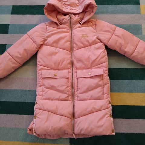Pent brukt vinterjakke (parkas) til jente med hette til jente, str 140, farge svart