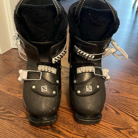 Salomon. Brukt. To spenner og borrelås. Normal slitasje utvendig, ingen synlig slitasje i sålen/inne i støvlene.