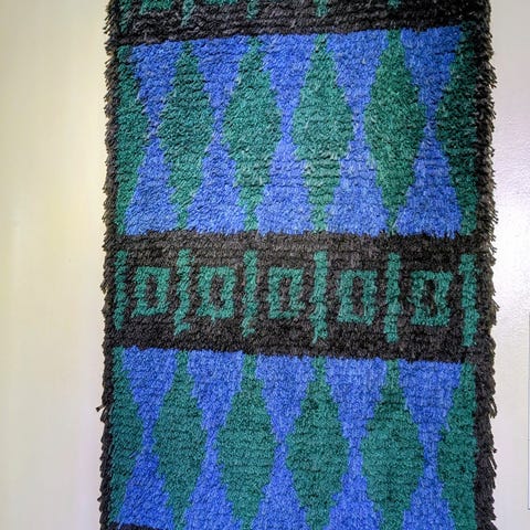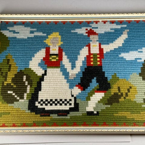 Nydelig gammelt polsk vegghengt teppe/rye. Selges for kr 300.