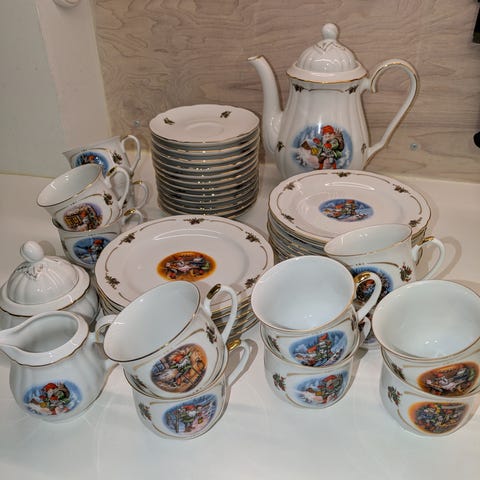 Ønsker å kjøpe noen ekstra middagstallerkener i dette serviset fra Pobra. Ta kontakt hvis du har noen til salgs! Prisen får vi bli enige om etter hvor mange tallerkener du har til salgs og hvor god tilstand de er i.