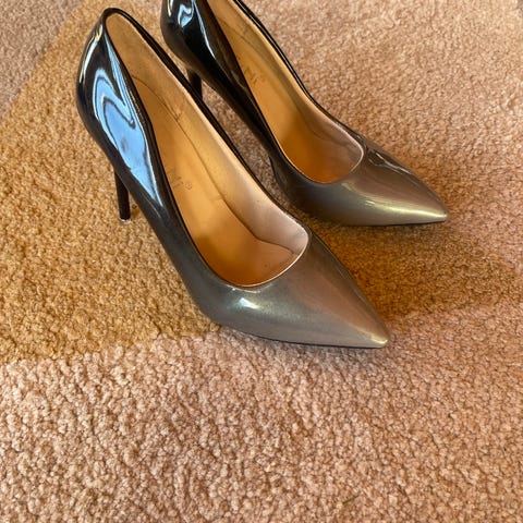 Pene høyhælte sko i strl 38. Sølv og turkis farge med små paljetter.