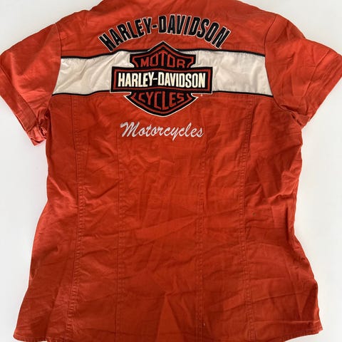 Harley overskjorte fra Blu (Vic) selges. Kremhvit. Str. 34, men stor i størrelsen/oversized.