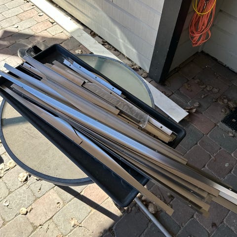 Håndtak til skapdør. Har blitt brukt til skap på vaskerom, men kan fint brukes til kjøkken eller garderobeskap. 12,8 cm mellom skruehull. 3 stk.