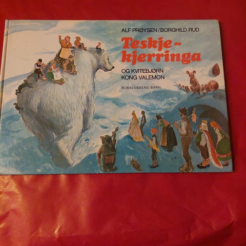 Teskjekjerringa og Kvitebjørn Kong Valemon av Alf Prøysen. Illustrert av Borghild Rud.