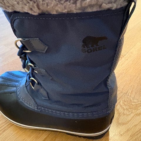 Varme Sorel vintersko str 38 selges billig for 150 kr! Gått litt opp i sømmen bak på støvlene, men kan fikses lett med lim eller nål og tråd.
