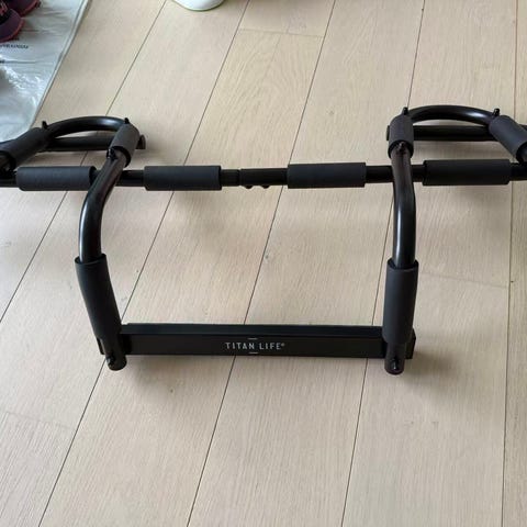 Selger pent brukt titan fitness door gym/dørgym. Festes i dørkarmen slik at man kan pullups. Også fin å bruke på bakken for enklere pushups.