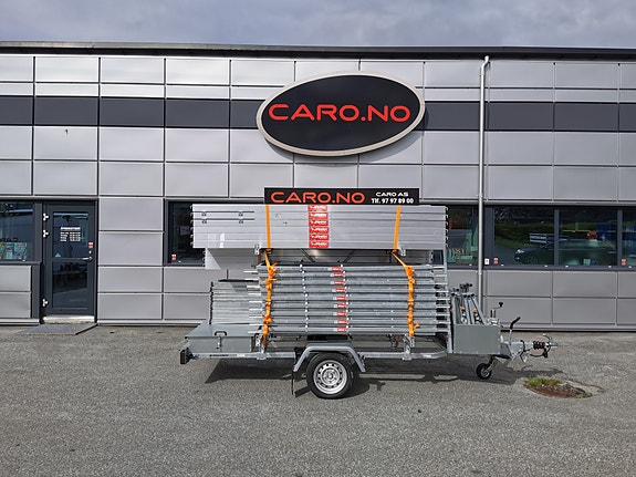 Enakslet tipphenger med elpumpe. Veldig god tippvinkel og enkel å dra med på trange steder. Alle sider er nedfellbare.