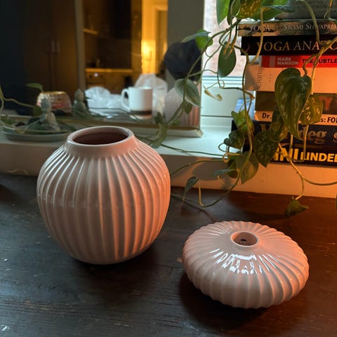Lekkert og tidløs Kähler - hvit vase og telys-holder.