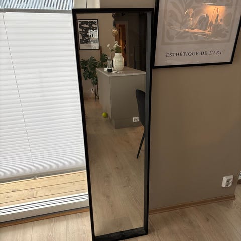 Mulig å henge på veggen eller stille opp langs vegg. Høyde topp til bunn: 150cm