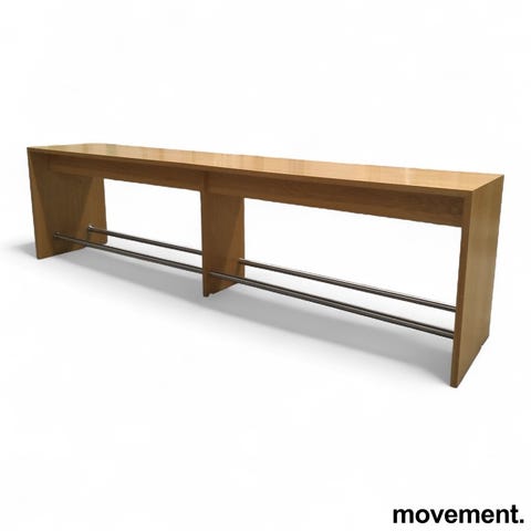 Barbord / ståbord i eikefiner, 240x90cm, høyde 106cm, brukt