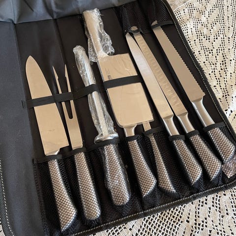 Selger helt nytt i rustfritt stål. Knivsett.8 kniver. Kjøttøks til ostekniv. Billig. Be om flere bilder og info