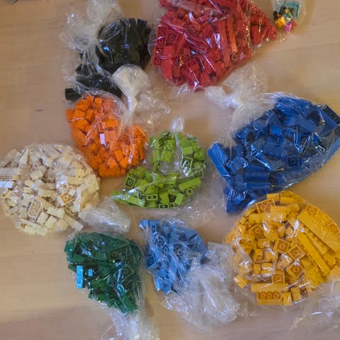En uåpnet boks med 100 samlepostkort fra LEGO.