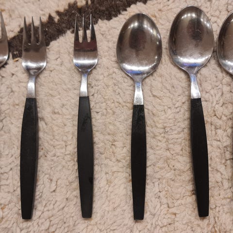 Bestikk-deler med sort plastskaft 6 deler
