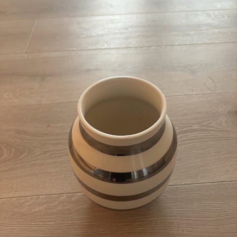 Medium (20cm) og liten (12,5cm) Kählervaser selges samlet. Sølv striper. Må hentes.