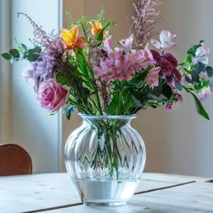Glassklar, trendy, stor vase med skjevskåret topp fra Perfect Home.
