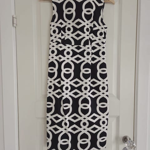 Sort og hvit zikk zakk mønstrete kjole fra HM i str 38 selges da den ikke har blitt brukt og bare henger i skapet