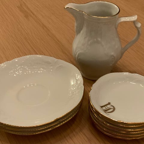Meissen porselen - 6 kakefat - blomstermønster - gullkant
