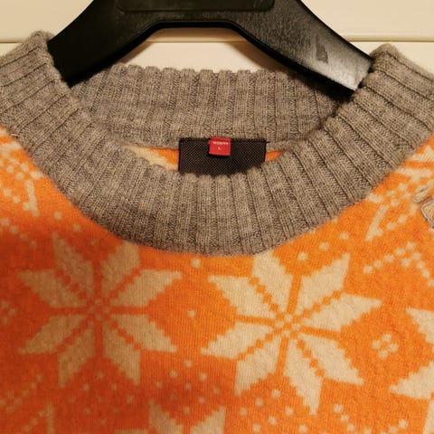 100% ULL. Rød Hvit Stripete GENSER. Stretch. ULVANG.
